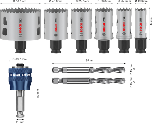 PRO Multi Material PC Plus Lochsägen-Set, 25-86 mm, 11-tlg.