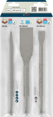 Set di scalpelli PRO SDS plus-5C, a punta 250, per piastrelle 40 x 260, a spatola 20 x 250 mm, 3 pz 2 607 019 159