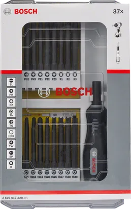 | 2 607 017 320 | PH1, PH2, PH3; PZ1, PZ2, PZ3; SL6; Th 10/15/20/25/27/30/40; HEX 3/4/5/6; TW1, TW2, TW3, TW4; SP6, SP8, SP10 | PH1; PH2; PH3; PZ1; PZ2; PZ3; SL6; TH10; TH15; TH20; TH25; TH27; TH30; TH40; HEX3; HEX4; HEX5; HEX6; TW1; TW2; TW3; TW4; SP6; SP8; SP10 | 75 | Set Content: PH1, PH2, PH3, PZ1, PZ2, PZ3, SL6, Th 10/15/20/25/27/30/40, HEX 3/4/5/6, TW1, TW2, TW3, TW4, SP6, SP8, SP10 | 37 Pcs | £41.61 |
