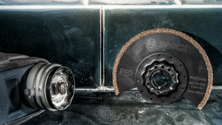 Multitools are great for removing old grout without damaging the tiles around. The PRO ACZ 85 RT3 does this efficiently and offers a long product life. You can also use it to cut cable channels in aerated concrete.