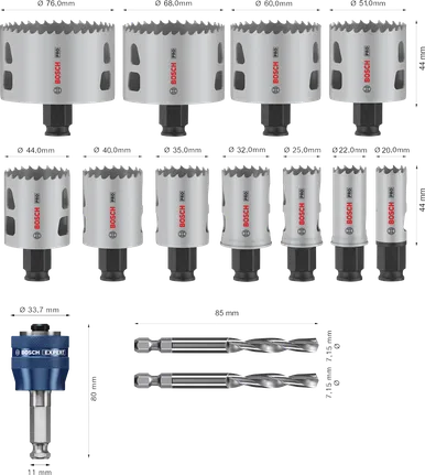PRO Multi Material PC Plus Hole Saw Set, 11 pcs