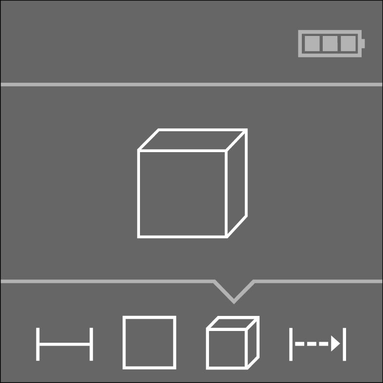 След приключване на третото измерване обемът се изчислява и изобразява автоматично. Резултатът се показва в реда за резултата (d). Отделните измерени стойности се показват на редовете с измервани стойности (c).