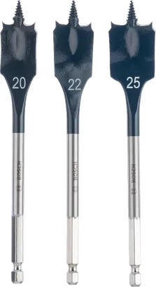 | 2 608 595 424 | 14.0; 16.0; 18.0; 20.0; 22.0; 24.0 | 6 | 6-piece SelfCut Speed spade bit set included diameters (mm): 14; 16; 18; 20; 22; 24 | - | 6 Pcs | Find a local dealer | |