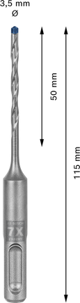 بفضل تقنية Carbide Technology من Bosch ورأس الكربيد الكامل، يدوم EXPERT SDS plus-7X لفترة أطول بكثير من رؤوس المثقاب المطرقي العادية. إنه يثقب حديد التسليح بشكل فعّال لذلك لا داعي للتوقف أو إعادة تحديد مكان الثقب المستهدف أو تغيير الرؤوس عند تواجه جزءًا من الفولاذ.