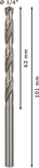 رؤوس ثقب ملتوية من PRO Metal HSS-G من الفولاذ عالي السرعة المجلفن، مقاس 1/4 x 63 x 101 مم