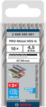 رؤوس ثقب ملتوية PRO Metal HSS-G بطول قياسي مقاس 4.5 × 47 × 80 مم من 10 قطع
