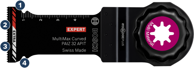 Det här förstklassiga multiverktygsbladet rymmer det allra senaste inom Bosch Carbide Technology: Remsan med ultrahårda tänder är baserad på Boschs unika Curved-Tec-design, så detta är det första bladet som hanterar instickssågning i metallplåt utan skrammel. Dessutom har det senaste nytillskottet i EXPERT MultiMax-familjen extra beläggning på hårdmetalltänderna för ännu längre livslängd.
