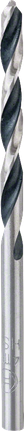 - Faible risque de bris en raison de l'élasticité du corps, hélice revêtue d'oxyde noir ; DIN 338, type N, pointe 135°