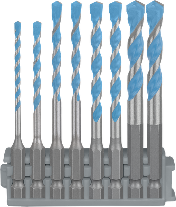 Універсальні свердла з цього набору дають змогу точно свердлити тверді матеріали, як-от граніт, без зісковзування завдяки гострому наконечнику та вдосконаленій геометрії конструкції. Виготовлені з оптимізованого твердого сплаву методом чистового шліфування вони також працюють з бетоном, цеглою, м’якою плиткою, деревиною і металом. Ці свердла допомагають виконувати завдання на професійному рівні незалежно від матеріалу.