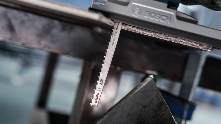 The PRO Multi Material thick and thin T345XF is made from Bi-Metal: it has a high-speed steel (HSS) tooth strip bonded with a more elastic high-carbon steel (HCS) body for the hardness and flexibility you need to tackle wood and metal. The jigsaw blade’s milled, side-set teeth ensure you get fast cuts while the progressive tooth spacing allows you to cut a broad range of materials. The blade is 132 mm long, which means you can cut workpieces up to 65 mm thick.