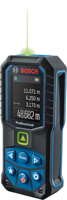تمنحك الأداة GLM 50-25 G Professional رؤيةً رائعة لبقعة الليزر الخضراء للتمكن من تحديد الهدف بسهولة عند القياس لمسافات طويلة في الداخل. وبفضل تصميمها المعتمد بشهادة IP65، فهي تتمتع بحمايةً كاملة من جزيئات الغبار ونفاثات الماء، بينما يتكفل جسمها الممتص للصدمات بمقاومة للسقوط حتى 1.5 متر على الخرسانة الصلبة. مزودة بزر قابل للتخصيص لتحديد وظائف أو إعدادات القياس المفضلة وبيان اهتزازي لتأكيد القياسات. تُدعم واجهتها سهلة الاستخدام 30 لغة وتتألف من شاشة ملونة ووضع الأعداد الكبيرة لتحسين إمكانية القراءة.