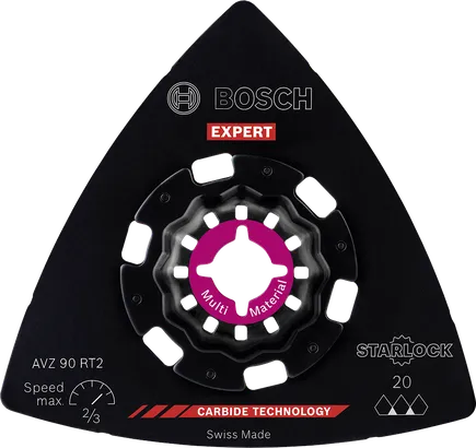 Using Bosch Carbide Technology, grits of the hardest metal are robustly fixed to the surface. This sharp grit remains fully effective over its long lifespan because you can clean it with a solvent. The EXPERT Sanding Plate is designed for multiple materials and users.