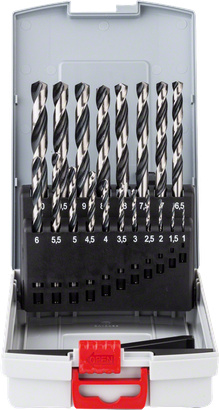 | 2 608 577 352 | 1.00; 1.50; 2.00; 2.50; 3.00; 3.50; 4.00; 4.50; 5.00; 5.50; 6.00; 6.50; 7.00; 7.50; 8.00; 8.50; 9.00; 9.50; 10.00; 10.50; 11.00; 11.50; 12.00; 12.50; 13.00 | 12; 18; 24; 30; 33; 39; 43; 47; 52; 57; 57; 63; 69; 69; 75; 75; 81; 81; 87; 87; 94; 94; 101; 101; 101 | 34; 40; 49; 57; 61; 70; 75; 80; 86; 93; 93; 101; 109; 109; 117; 117; 125; 125; 133; 133; 142; 142; 151; 151; 151 | HSS Twist Drill Bit PointTeQ 25 pcs ProBox included diameters (mm): 1; 1,5; 2; 2,5; 3; 3,5; 4; 4,5; 5; 5,5; 6; 6,5; 7; 7,5; 8; 8,5; 9; 9,5; 10; 10,5; 11; 11,5; 12; 12,5; 13 included working lengths (mm): 12; 18; 24; 30; 33; 39; 43; 47; 52; 57; 57; 63; 69; 69; 75; 75; 81; 81; 87; 87; 94; 94; 101; 101; 101 | 25 Pcs | Find a local dealer |