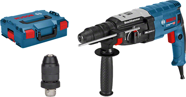 The GBH 2-28 F Professional with a quick-change chuck is the strongest tool within the Bosch 2 kg SDS plus corded rotary hammer category. Its robust motor delivers an outstanding 3.2 J of impact energy for high-power drilling performance. The rotary hammer also features KickBack Control for increased user protection and Vibration Control for effortless and continuous work in time-intensive applications.