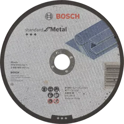 - Bosch cutting discs comply with the maximum safety requirements, such as EN 12413