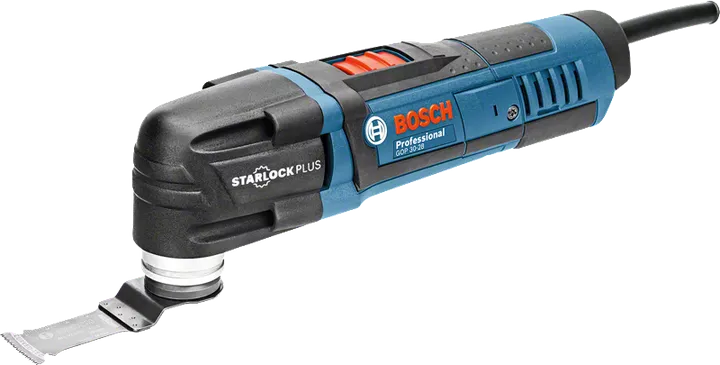 The GOP 30-28 Professional corded multi-tool offers the best price-to-performance ratio in the Bosch StarlockPlus category. It features a 300 W motor combined with a superior Starlock interface with an optimised 3-dimensional tight-fitting connection between the machine and accessory for the highest possible power transmission. Furthermore, the multi-tool's small ergonomic handle grip provides comfortable handling and better tool control. It also has a magnetic mounting enabling easy accessory changes.