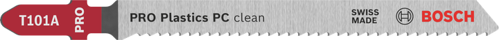 The PRO Plastics PC clean T101A Jigsaw Blade is a great choice for trade professionals who need to cut thermoplastic materials, like PC (polycarbonate). We made it from high-carbon steel (HCS) and gave it a tapered body and fine-pitched ground teeth to ensure you get clean cuts without melting the plastic. Use it to cut PC sheets between 2 and 20 mm thick.
