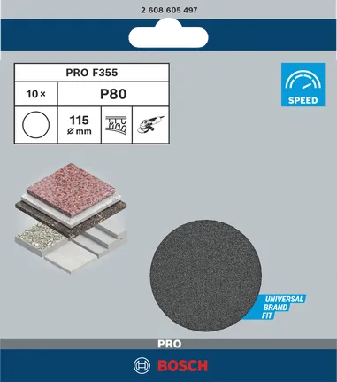 Disco de lijado PRO F355, 115 mm, G80, 10 piezas
