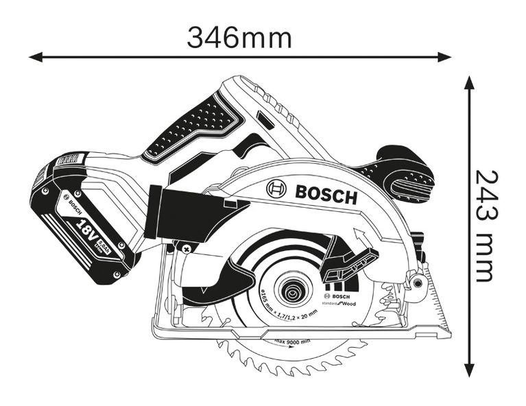 La GKS 18V-57 Professional corta madera maciza y productos derivados de la madera como OSB, madera contrachapada o MDF. Es compatible con todas las baterías y cargadores Bosch Professional 18V (Professional 18V System). También compatible con AMPShare, la alianza de batería multimarca.