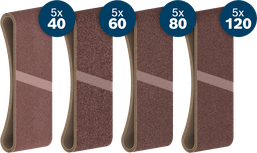 PRO X440 Schleifband Set, 100x610mm, 5xK40 , 5xK60 , 5xK80 , 5xK120, 20-tlg., Starter Pack