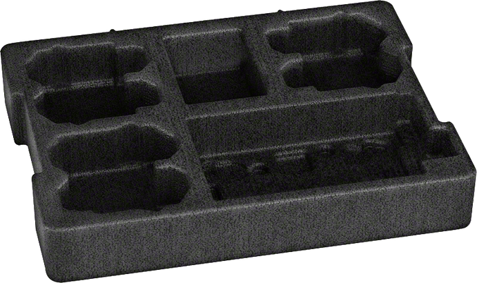 In dieser Volleinlage können ein 18V-Ladegerät und Akkus sicher und geordnet verstaut werden. Sie ist mit der L-BOXX 136 von Bosch kompatibel und ermöglicht eine optimale Raumnutzung.