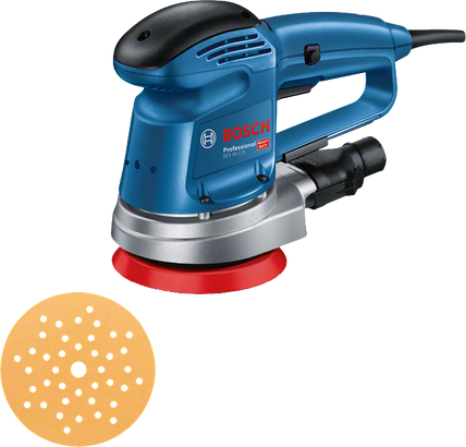 Der GEX 34-125 Professional ist Boschs robuster, kabelgebundener 125-mm Exzenterschleifer mit hoher Abtragsleistung. Konstante Drehzahl und hohe Abtragsleistung garantieren selbst bei anspruchsvollen Oberflächen effiziente Ergebnisse. Ein Aluminiumlagerflansch gewährleistet lange Werkzeuglebensdauer und macht das Gerät zur idealen Lösung für schwierige Anwendungen. Dank seiner Ausstattung mit einem Multiloch-Schleifteller können Schleifblätter mit verschiedenen Lochrastern verwendet werden und die Staubabsaugung ist deutlich stärker.