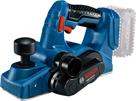 Dieses Elektrowerkzeug eignet sich für das Hobeln von Holz. Es ist kompatibel mit allen Bosch Professional 18V-Akkus und -Ladegeräten (Professional 18V System) und der Click & Clean-Staubabsaugung. Auch kompatibel mit AMPShare, der markenübergreifenden Akku-Allianz.