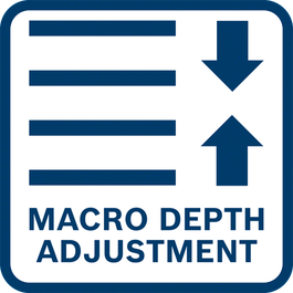 Diese Kantenfräse verfügt außerdem über Funktionen wie eine schnelle Makro-Tiefeneinstellung, eine Feineinstellung, eine feststellbare Schnitttiefe und eine Spindelarretierung.