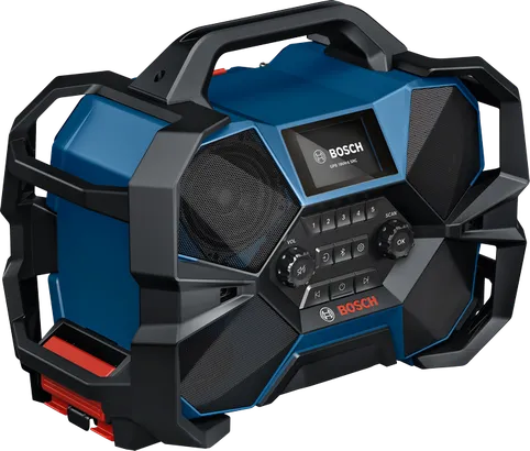 Höre bequem deine Lieblingsmusik am Arbeitsplatz. Unser Hybridradio GPB 18VH-6 SRC Professional liefert einen erstklassigen, kristallklaren Klang aus zahlreichen Quellen: DAB+, FM, Bluetooth®, AUX sowie Multi-Speaker Sound über mehrere Lautsprecher. Multi-Speaker Sound erlaubt die Verbindung mehrerer kompatibler Geräte und das Teilen von Musik über Bluetooth®. Dieses robuste Radio verfügt über einen Schutzrahmen und ist dank seiner L-BOXX-Kompatibilität leicht zu transportieren – einfach das Radio auf eine L-BOXX klicken und es kann losgehen. Die 12V- oder 18V-Akkus können geladen werden, während das Radio mit Netzstrom läuft. Das GPB 18VH-6 SRC Professional ist mit einem USB-Anschluss zum Laden von Smartphones ausgestattet. Es verfügt außerdem über eine Vorrichtung, mit der sich der 18V-Akku leicht entnehmen lässt: einfach am Hebel ziehen und der Akku wird entsperrt und ausgeworfen – Es ist nicht mehr notwendig die rote Taste zu drücken und den Akku aus dem Fach zu fummeln.