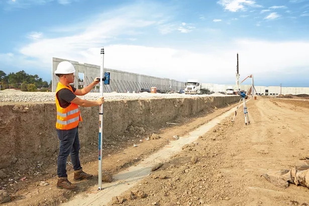Diesen Empfänger zusammen mit dem GRL 600 CHV zum Bestimmen der Aushub- und Füllmengen bei Baggerarbeiten, zum Betongießen, zur Landschaftsgestaltung und für Fassadenarbeiten verwenden.