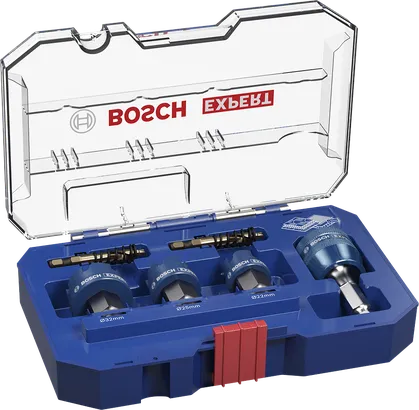 | 2 608 901 963 | 22; 25; 32 | 5 | Set bevat: 3 x EXPERT Sheet Metal gatzagen (22, 25, 32 mm) 1 x Power Change Plus adapter Hex 11 mm 2 x HSS-Co centreerboren met uitwerpveer | 6 St. | 225,14 € | Dealer zoeken |
