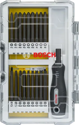 | 2 607 017 320 | PH1, PH2, PH3; PZ1, PZ2, PZ3; SL6; Th 10/15/20/25/27/30/40; HEX 3/4/5/6; TW1, TW2, TW3, TW4; SP6, SP8, SP10 | PH1; PH2; PH3; PZ1; PZ2; PZ3; SL6; TH10; TH15; TH20; TH25; TH27; TH30; TH40; HEX3; HEX4; HEX5; HEX6; TW1; TW2; TW3; TW4; SP6; SP8; SP10 | 75 | Inhoud set: PH1, PH2, PH3, PZ1, PZ2, PZ3, SL6, Th 10/15/20/25/27/30/40, HEX 3/4/5/6, TW1, TW2, TW3, TW4, SP6, SP8, SP10 | 37 St. | 58,33 € |