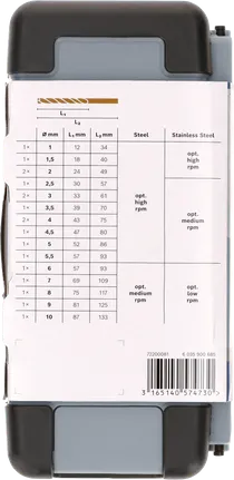 | 2 607 017 047 | 1,0; 1,5; 2,0; 2,0; 2,5; 3,0; 3,0; 3,5; 4,0; 4,0; 4,5; 5,0; 5,5; 6,0; 7,0; 8,0; 9,0; 10,0 | 12; 18; 24; 24; 30; 33; 33; 39; 43; 43; 47; 52; 57; 57; 69; 75; 81; 87 | 34; 40; 49; 49; 57; 61; 61; 70; 75; 75; 80; 86; 93; 93; 109; 117; 125; 133 | 180,0 x 85,0 x 45 | 1 St. | 99,60 € | Verkrijgbaar bij onze partners | |