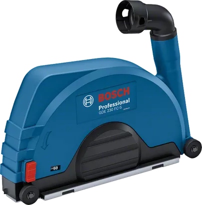 De Bosch GDE 230 FC-S Professional is een volledige stofkap voor haakse slijpers met standaard beschermkappen en schijfdiameters van 230 mm. De volledige afdekking maakt verbeterde stofafzuiging mogelijk voor nagenoeg stofvrij werken. Door een handige 360°-verbinding tussen haakse slijper en stofafzuiger is de machine makkelijk te hanteren. Aanpasbare snijdiepten en geïntegreerde wielen ondersteunen precisiewerk. De stofkap is compatibel met het Bosch Click & Clean System en met een groot aantal haakse slijpers met standaard beschermkappen.