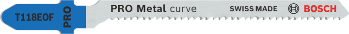 A Bi-Metal PRO Metal curve T118EOF possui tira do dente em aço de alta velocidade (HSS) ligada a um corpo de aço carbono (HCS) mais elástico para a dureza e a flexibilidade de que você precisa para lidar com chapas de metal. A lâmina estreita permite fazer curvas rápidas, ajudando você a cortar curvas com facilidade. Dentes fresados e ondulados garantem cortes curvos e limpos. Utilize-a para cortar chapas de metal com espessura entre 1,5 e 4 mm.