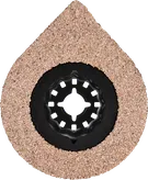 Devido ao formato exclusivo de gota, a EXPERT AVZ 70 RT4 3 max realiza três trabalhos distintos no reparo de azulejos, tornando-a de grande valor e garantindo um trabalho contínuo. Com a lixa de carbeto de alta qualidade, ela pode cortar a argamassa ao redor de um azulejo com facilidade e atinge até os cantos mais apertados com a ponta afiada. A EXPERT AVZ 70 RT4 3 max também funciona como uma base de lixa para remover a argamassa antiga atrás do azulejo.