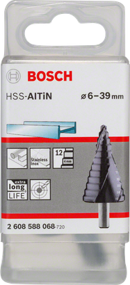 - La broca escalonada de HSS AlTiN perfora con suavidad en varios diámetros con una sola broca