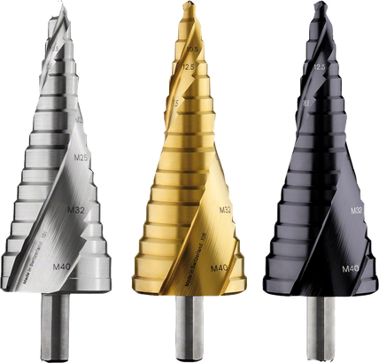 - La broca escalonada de HSS perfora con suavidad en varios diámetros con una sola broca