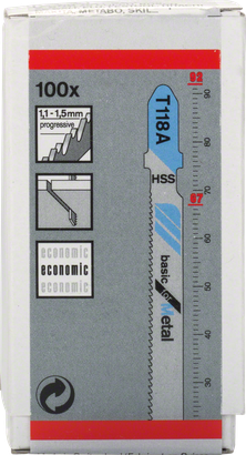 - La hoja de sierra de calar T 118 A Basic for Metal realiza cortes rectos en metal