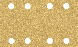 Rechteckiges Schleifpapierblatt von Bosch mit mehreren Staubabsauglöchern.