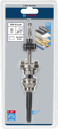Q-Lock soll Profis, die Lochsägen verwenden, bei der Bewältigung ihres häufigen Problems helfen: der Zeit, die zum Wechseln einer Lochsäge benötigt wird. Der PRO Q-Lock Adapter verfügt über ein ¼-Zoll-Sechskantfitting, sodass sich Lochsägen und Vorbohrer schnell und ohne Werkzeug auswechseln lassen. Mit der Adaptermutter kann der Adapter Lochsägen mit einem Durchmesser von 14 bis 210 mm aufnehmen.