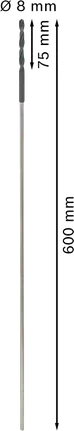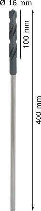 • Auslaufende Spiralnut zum Bohren durch harte Materialien ohne Verklemmen