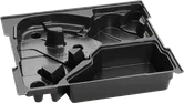- Ideale Raumnutzung durch exakt auf Werkzeug und Zubehör zugeschnittene Einlage und flexible Nutzung von auf das jeweilige Werkzeug angepassten Zubehörfächern.