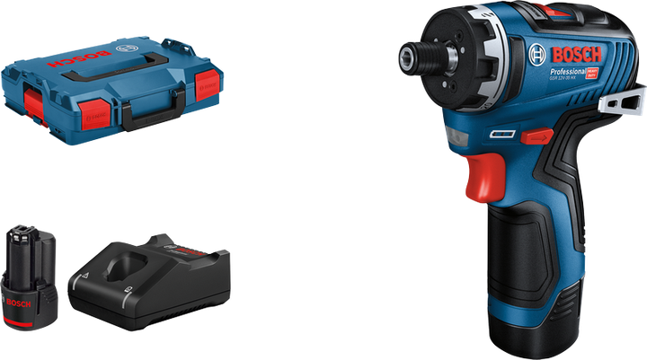 - Mit bis zu 1.750 min⁻¹ ist der GSR 12V-35 HX der schnellste Akku-Schrauber mit Zweiganggetriebe in der 12-Volt-Klasse