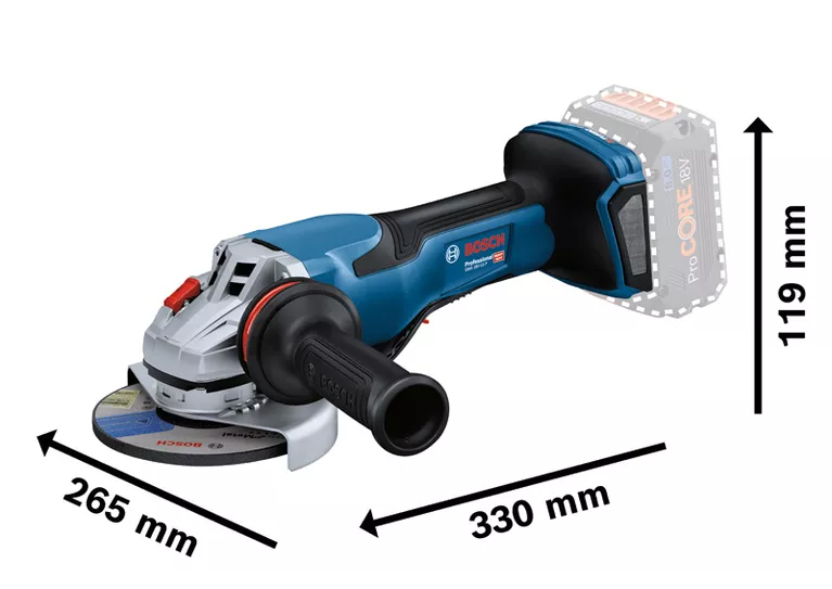 Er ist deal zum Schleifen von Metall und Schweißnähten sowie zum Trennen von Metall, Beton, Ziegel und Fliesen. Für eine staubarme Arbeitsumgebung den GWS 18V-15 P Professional in Kombination mit der Absaughaube GDE 125 EA-T Professional oder GDE 115/125 FC-T Professional verwenden. Kompatibel mit dem Bosch Professional 18V System und mit der markenübergreifenden AMPShare Akku-Allianz. Für maximale Leistung einen ProCORE18V ≥ 5,5 Ah verwenden.
