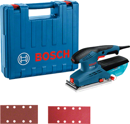 La GSS 23 AE Professional est la ponceuse vibrante filaire d’entrée de gamme fiable de Bosch Professional de la catégorie 230 mm pour applications de ponçage multiples. La structure robuste avec système de serrage renforcé assure une grande durabilité et donc une longévité très élevée. La présélection de vitesse permet une utilisation sur de multiples matériaux. Elle dispose aussi d’un plateau auto-agrippant et d’un système de serrage assurant une fixation parfaite et facile des feuilles abrasives.