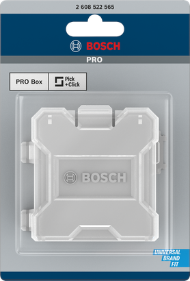 La PRO Box ti aiuta a organizzare bit, viti e tasselli e a conservarli in modo sicuro. La scatola si chiude e apre facilmente. È compatibile con le custodie Bosch Pick and Click, quindi puoi agganciarla facilmente per creare la tua cassetta degli attrezzi personale. È sufficiente rimuovere la custodia di stoccaggio che ti serve dalla cassetta degli attrezzi e portarla con te.
