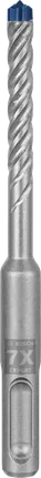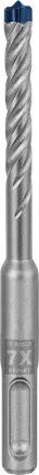 Forare il calcestruzzo armato è un lavoro pesante che tradizionalmente mette a dura prova le punte. Le normali punte a due taglienti si incastrano nell'armatura e alla fine si rompono. La testa integralmente in metallo duro di EXPERT SDS plus-7X presenta un design avanzato a 4 taglienti realizzati da un unico pezzo del metallo più duro: Non si inceppa e non presenta punti deboli all'impatto.