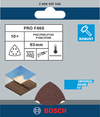 La PRO F460 es una gran elección para carpinteros que trabajan con una multicortadora y necesitan una hoja de lija resistente para aplicaciones difíciles. La hoja tiene un papel de soporte resistente al calor y al desgarro, lo que significa que soportará bien las acumulaciones de calor. Utilícela para lijar madera dura y eliminar pintura y laca viejas de muebles y herrajes.