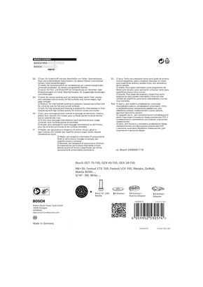 | 2 608 900 007 | GET 75-150, GEX 34-150, GEX 40-150 Professional, 3M, DeWalt, Dynabrade, Festool, Makita, Mirka, Rupes | Medio | 150 | Múltiples agujeros | 1 Pzs. | Encontrar un distribuidor local |